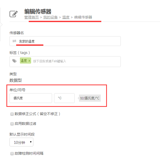 4:添加设备成功后,点击添加传感器,定义传感器,和传感器值的单位
