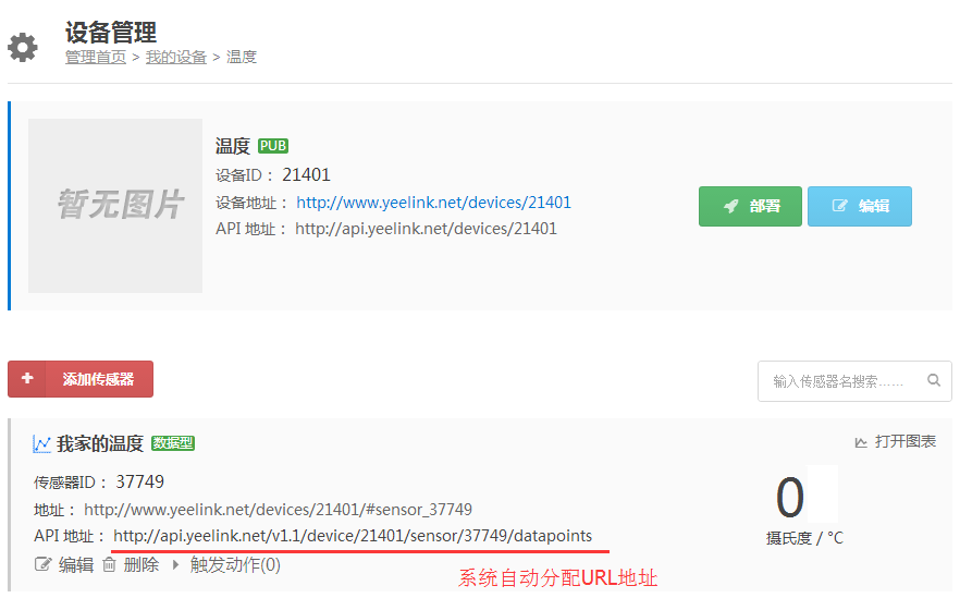 5:记住传感器的API地址,此API地址用户WiFi模块通信的链接URL。