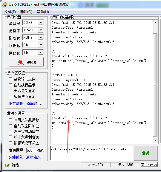 C32系列WiFi模块以HTTP GET方式向yeelink物联网平台获取数据