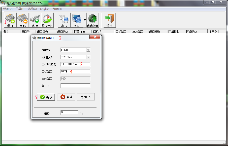 h)打开虚拟串口软件,创建COM口,按照图片中参数设置。