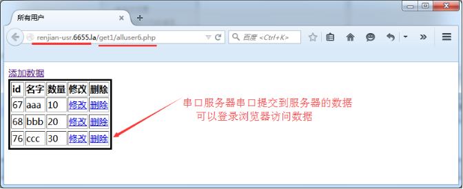 2.通过浏览器登陆网页,查看提交到服务器的数据。