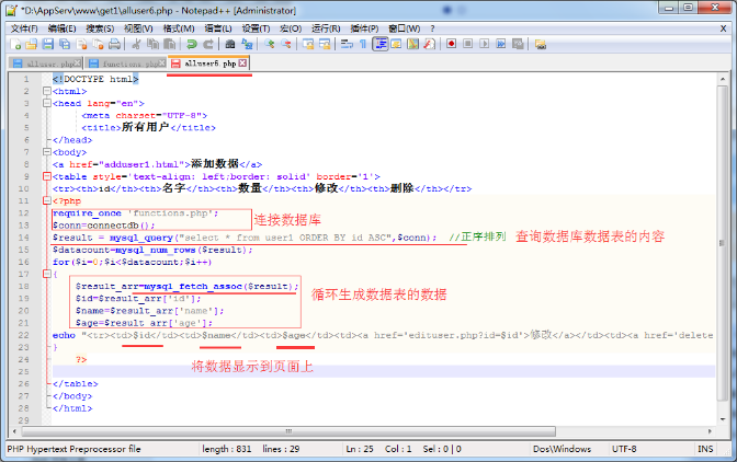 c.网页显示提交的数据函数。