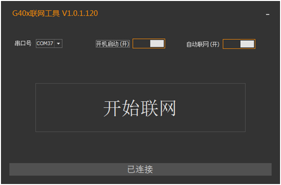 选择:4G模块的串口号,使用拨号软件自动拨号,拨号成功qq可以在线。