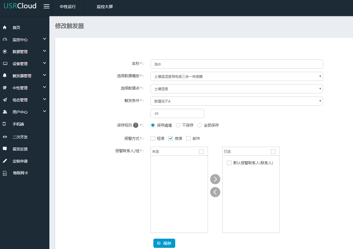 c 短信报警需要在报警联系人内关联联系人的手机号码。