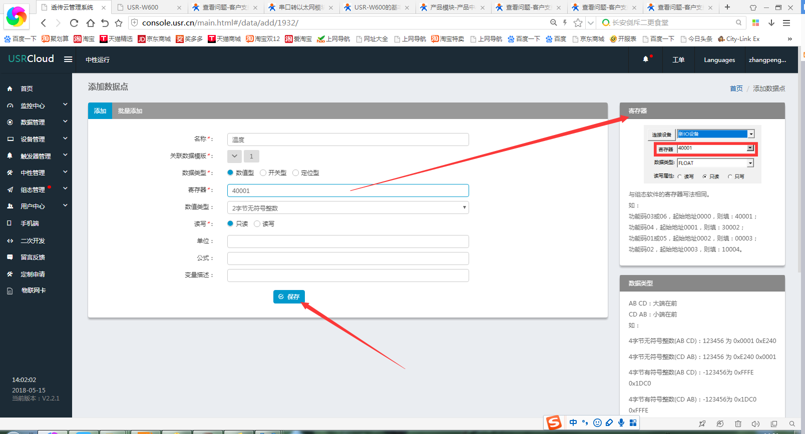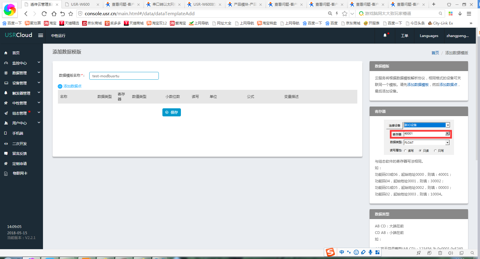 数据流向:modbus slave软件----410s--路由器---透传云(组态显示)