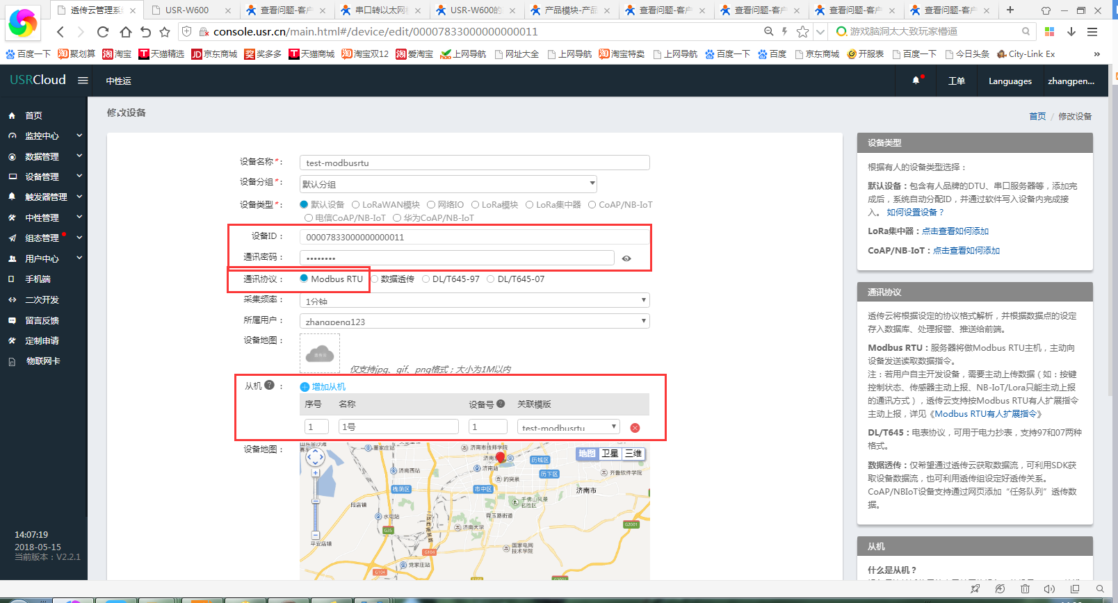 客户实际应用:modbus rtu设备---410s--路由器--透传云(组态显示)