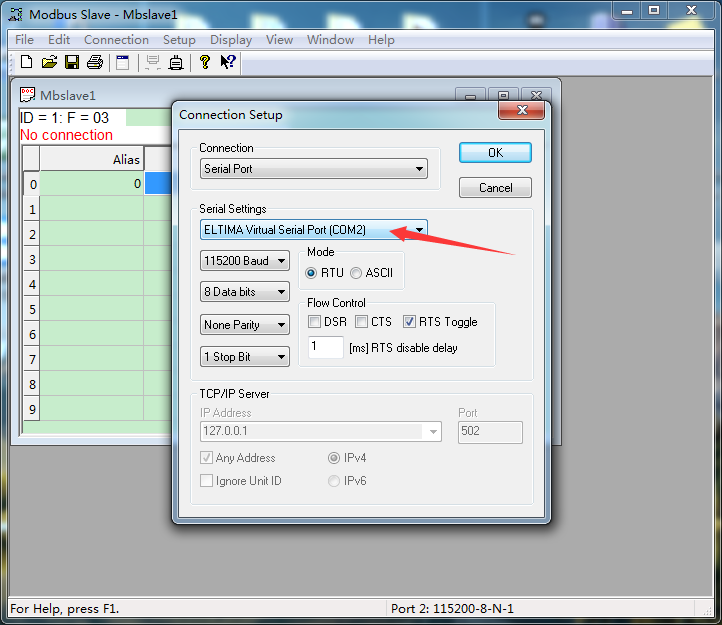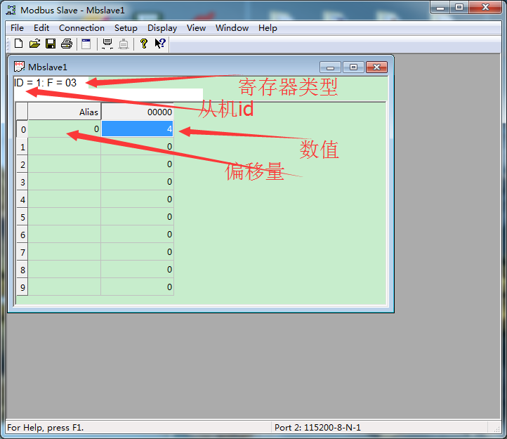 说明:用modbus slave软件模拟modbus rtu协议的串口设备;