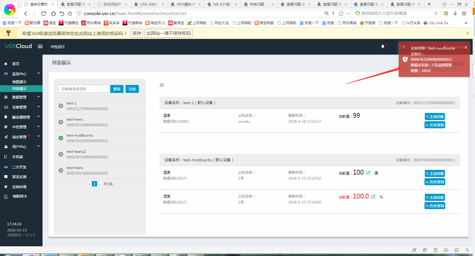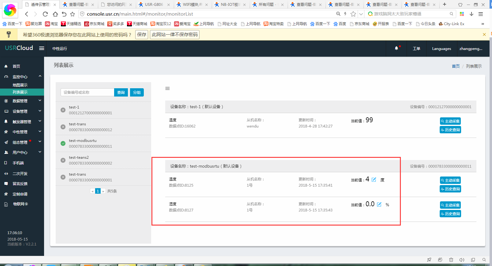 9、在监控中心查看数据