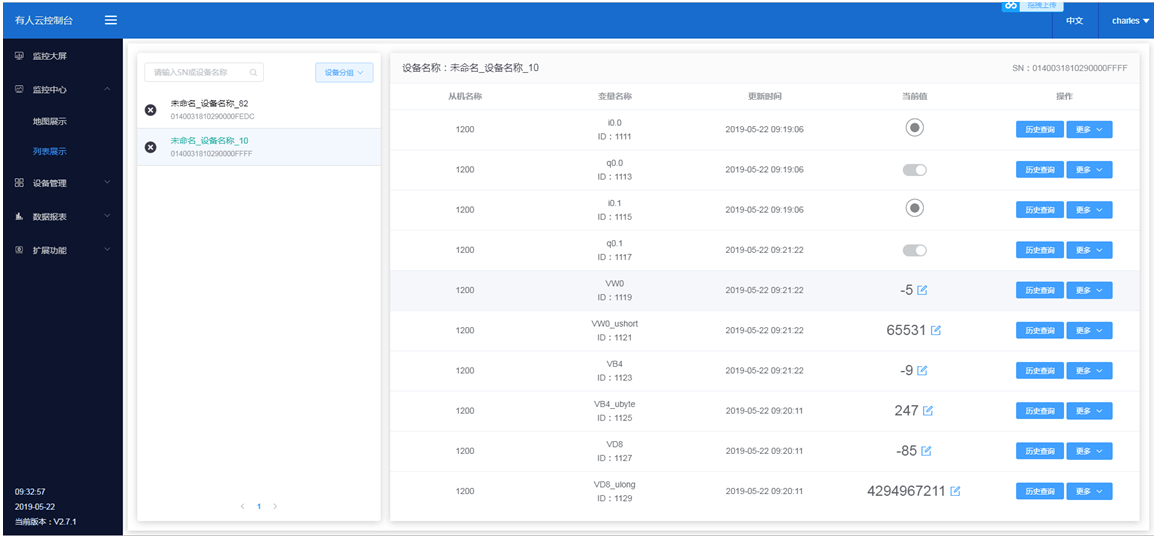 4、完成设置,云台即可监控PLC数据,可以画云端组态图
