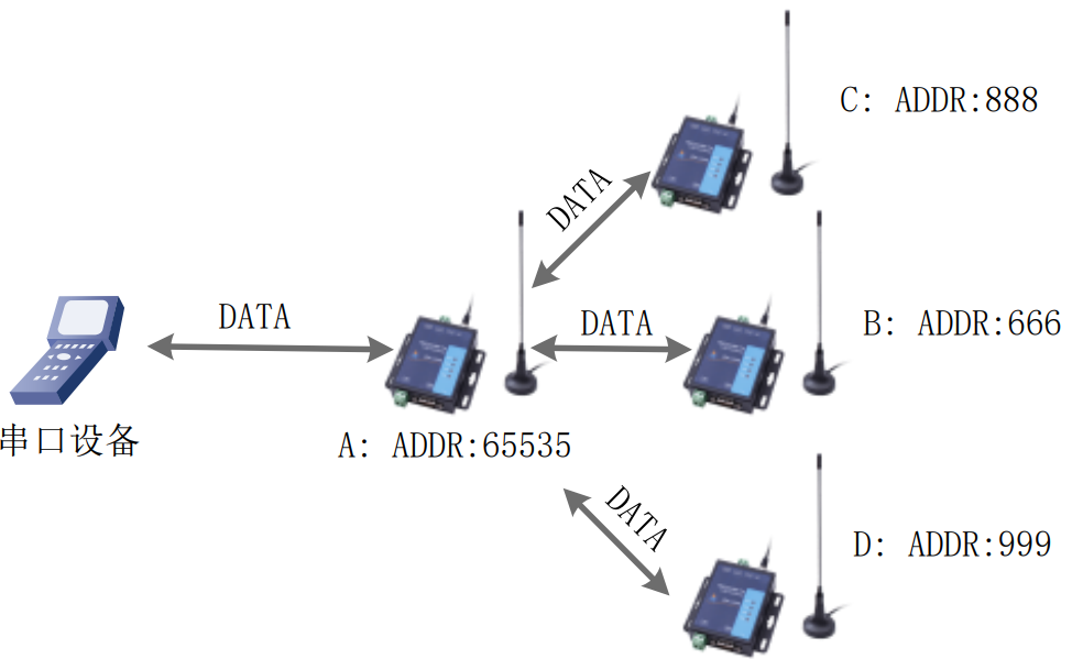 所有设备工作在透传状态,保证广播发送的模块的ADDR为65535,其他设备与广播设备的速率等级、信道参数相同。