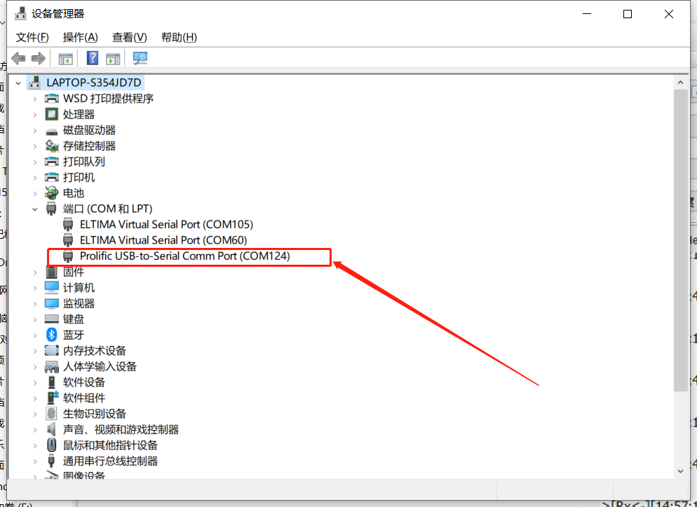 其中串口号可以在电脑的“设备管理器”中查看,见下图;