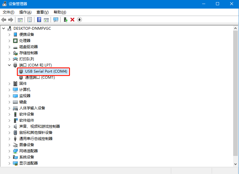 注:串口号可以在电脑的“设备管理器-端口”查看