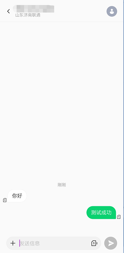 发送数据“你好”,我们可以看到目标手机号接收到了该数据