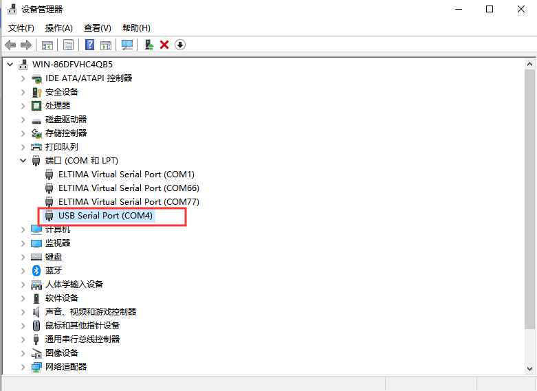注:串口号可以在电脑的“设备管理器-端口”查看