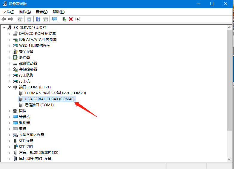 10、在电脑设备管理器处确认串口转USB插在电脑上识别到的COM口为:COM40。