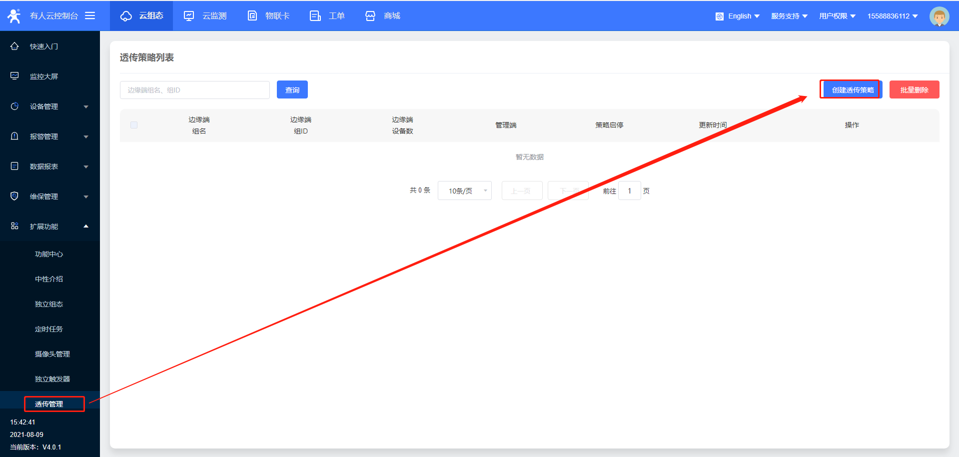 6>扩展功能--功能中心---开通透传管理(如果已开通,请忽略此步骤)