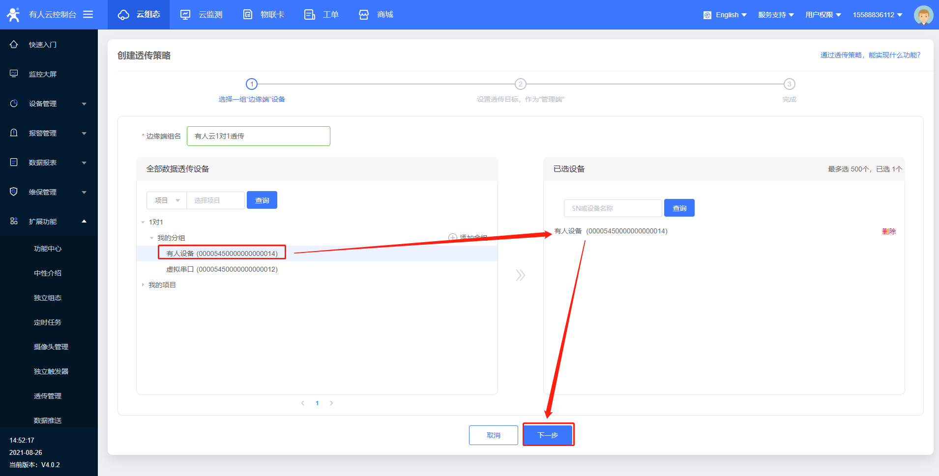 8>边缘端设备:选择刚才添加的“有人设备”这个设备