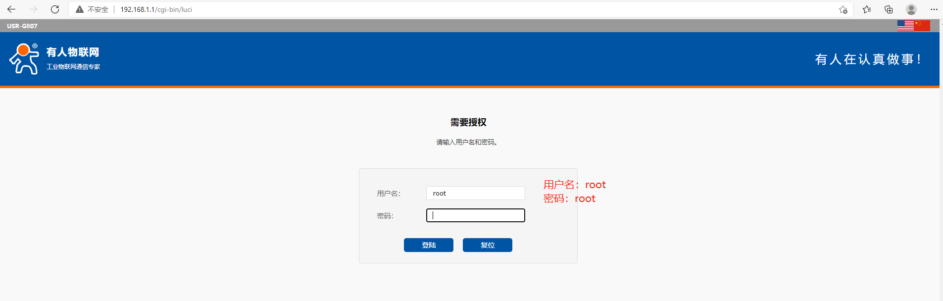 注意:如果修改过G807的LAN口IP地址,需要用修改后的IP登录