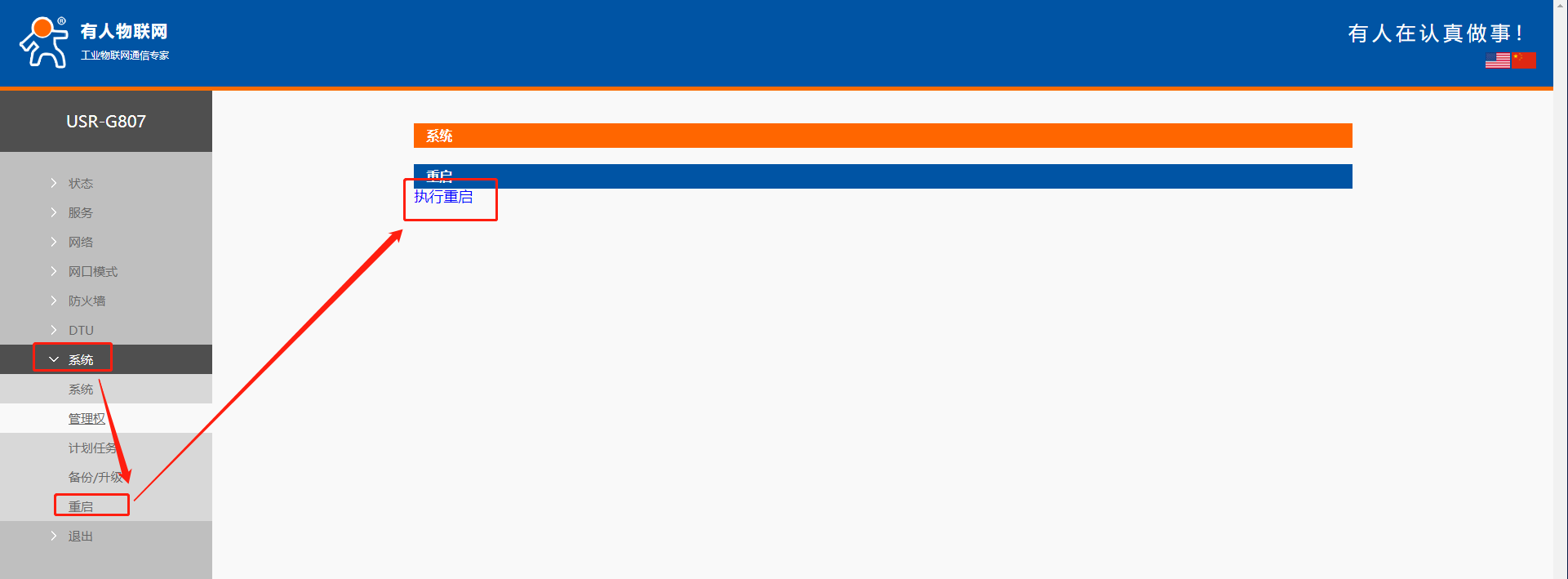 6>重启G807模块,在网页上修改G807的参数,都需要重启一下G807,修改后的参数才会生效的。