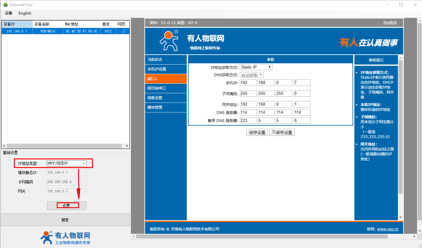 2、USR-N510-H7设置软件https://www.usr.cn/Download/383.html
