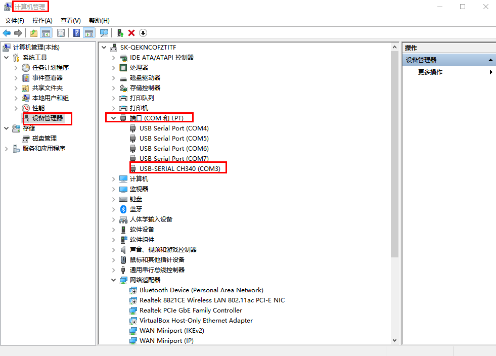 点击电脑计算机,右击鼠标,点击设备管理器,查看端口,确认USB-RS485串口线的COM口号,有人测试电脑是COM3