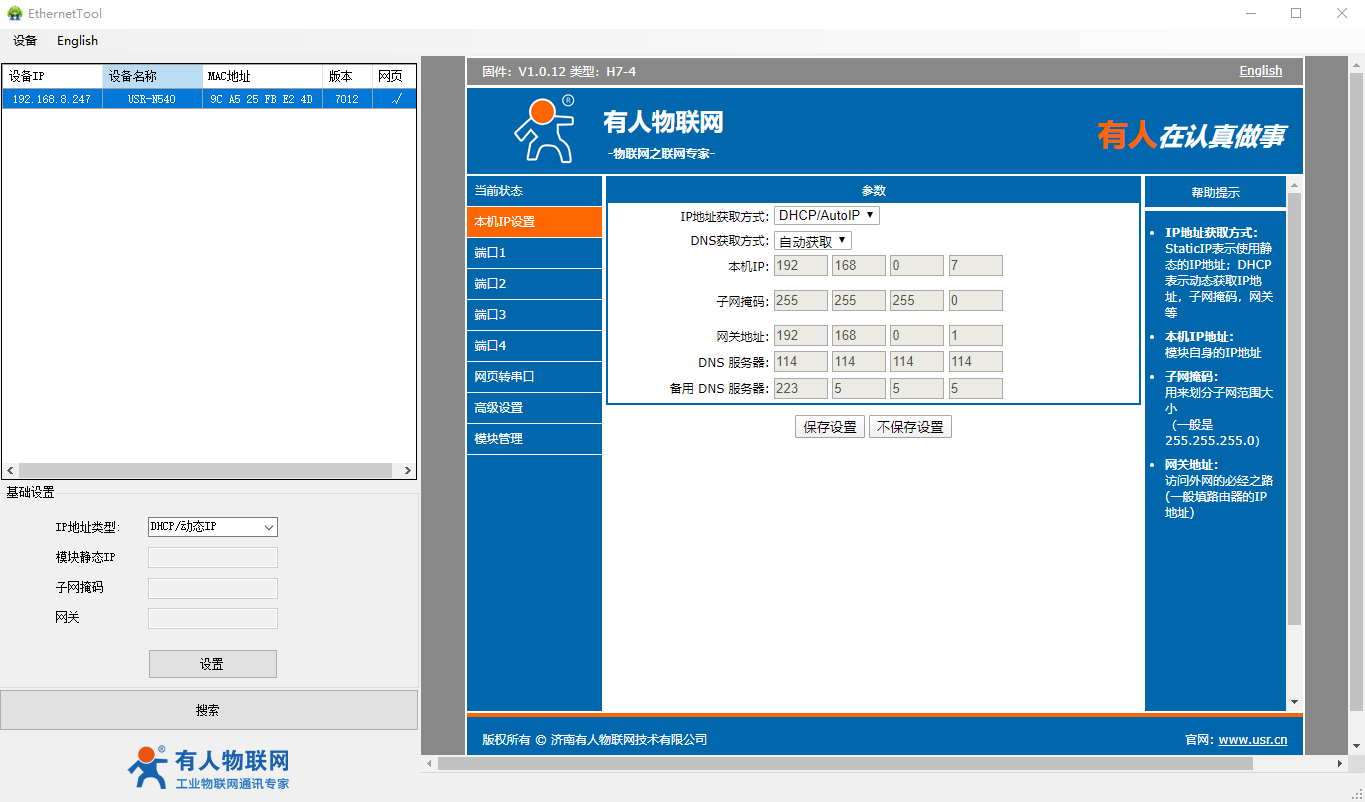 2、USR-N540-H7设置软件https://www.usr.cn/Download/383.html