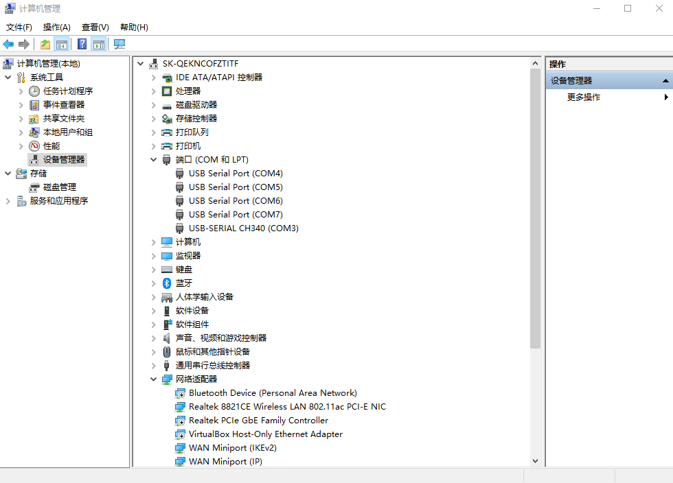 电脑鼠标点击计算器管理,右击,点开设备管理器,点击端口,查看USR-IO34-LR-C 接的USB-RS485串口线COM口号。