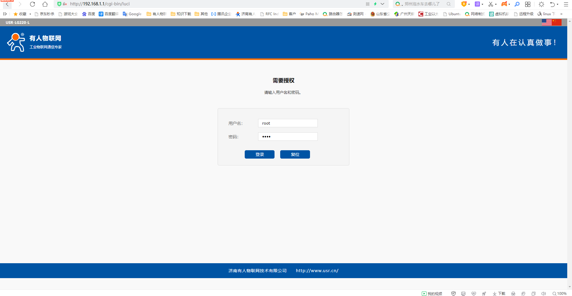 2、浏览器输入USR-LG220-L默认的IP,登录USR-LG220-L内置网页,默认登录密码是admin。