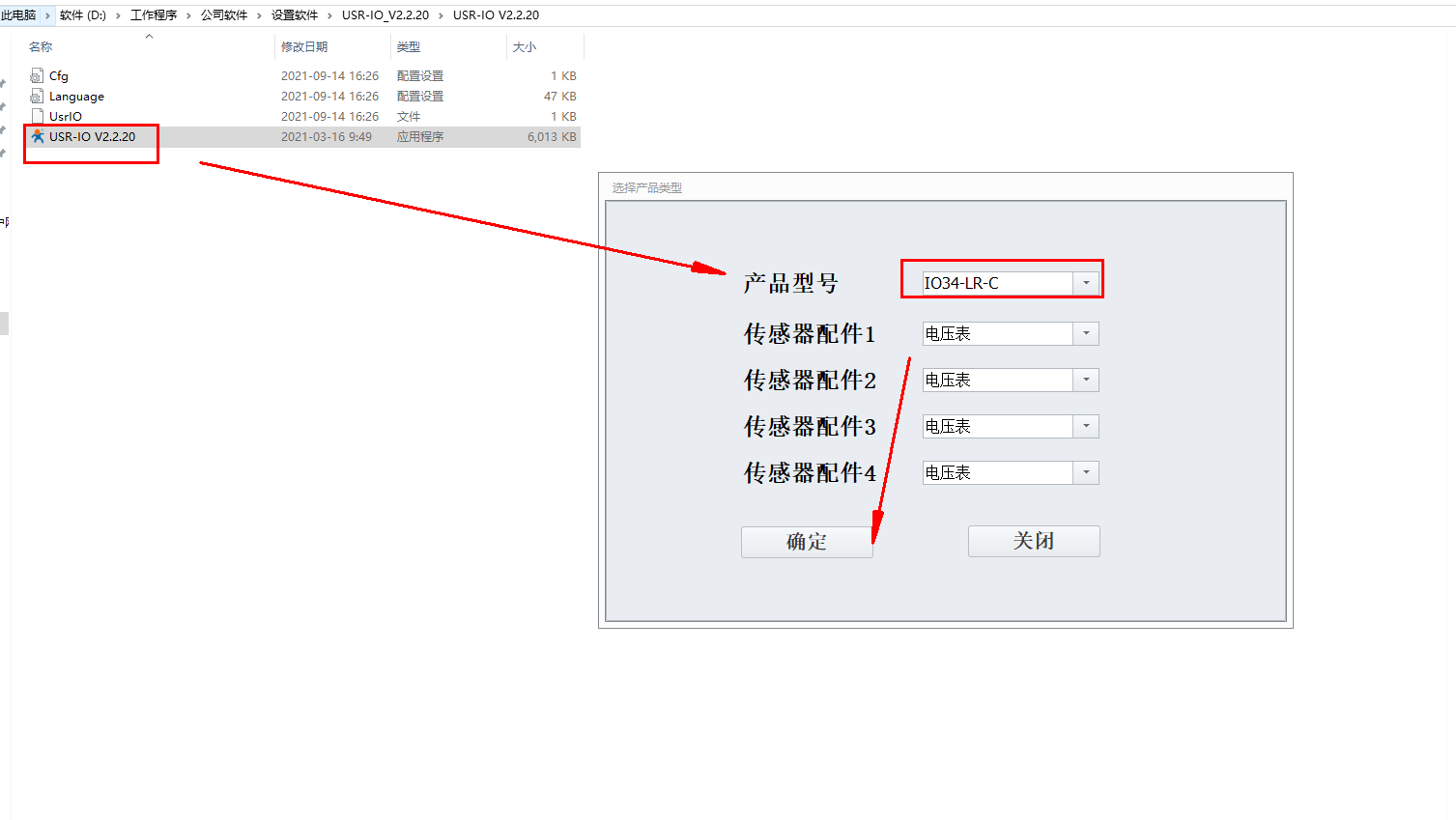 1、打开IO设置软件,选择产品型号IO34-LR-C