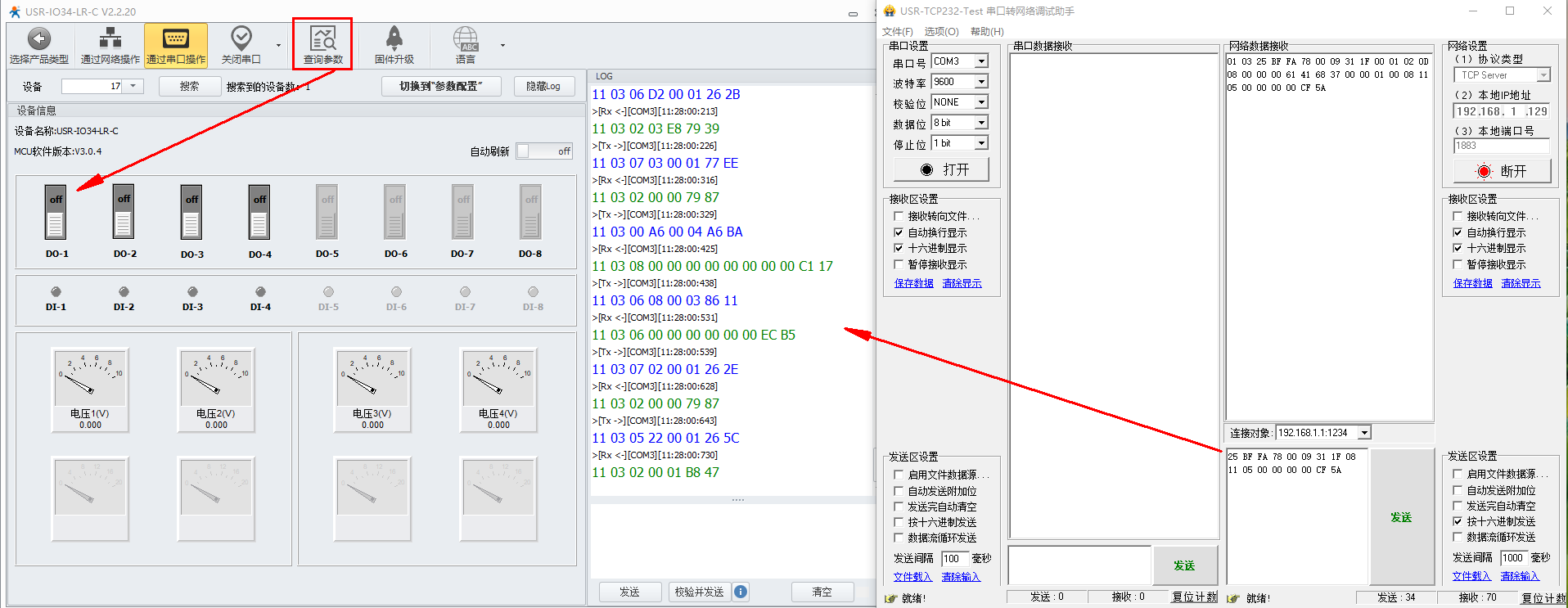 USR-LG220-L和USR-IO34-LR-C服务器下发模式示例