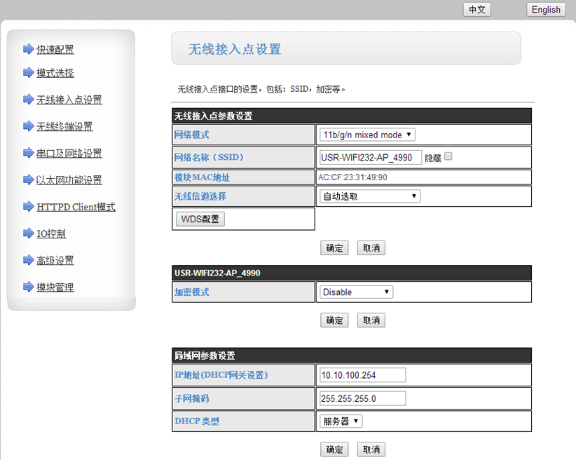 4:此为AP模式AP的设置参数。SSID和通信IP和端口