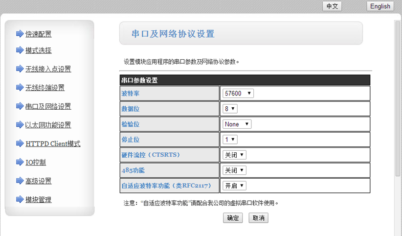 7:串口参数设置:波特率支持300-460800.支持硬件流控,模块支持接485芯片。支持自适应波特率。