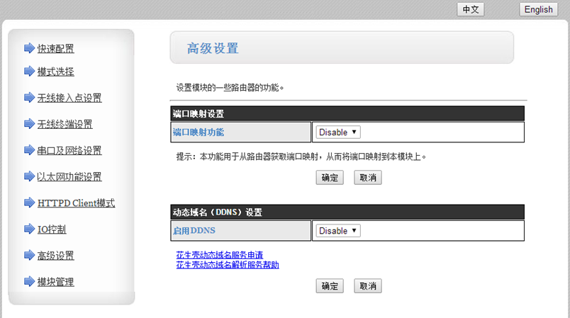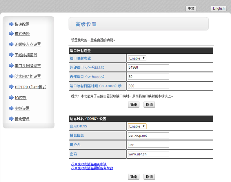 11:模块支持使用动态域名-花生壳:具体域名可以到花生壳注册。支持端口映射UPNP。前提是模块连接的无线路由UPNP开启,一般是开启的。使用动态域名的前提是必须保证路由器的WAN口IP是公网IP,具体查询方式,将WAN口地址粘贴到百度,可以查询到是否是公网IP.