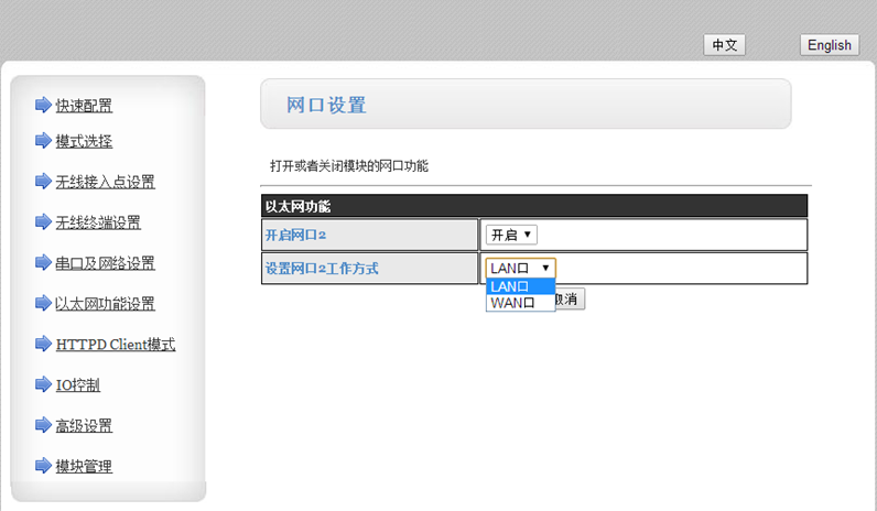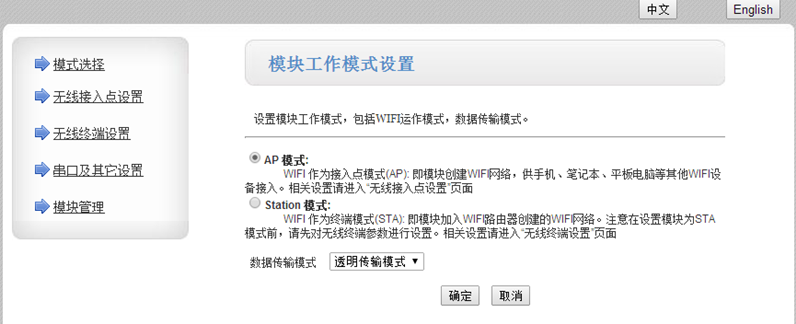 2:网页设置支持两种工作模式AP模式 STA模式。