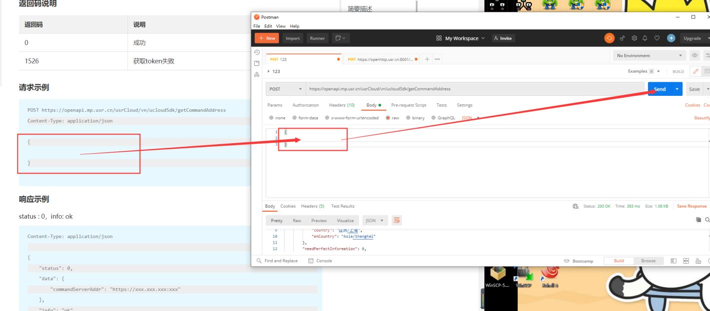 6、将请求示例复制到body的raw中,之后点击Send,会生成一个链接,这个链接是命令下发地址