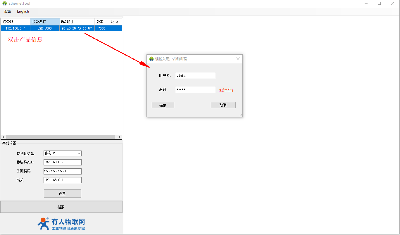 鼠标双击产品信息,会弹出登录框。用户名和密码都是admin。登录之后,查询参数