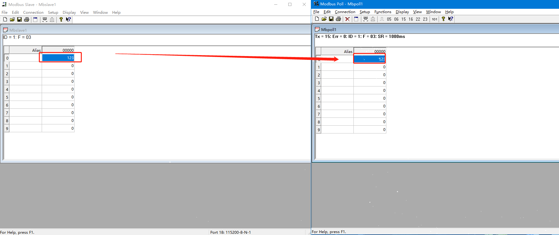 2. 打开MODBUS SLAVE软件模拟从机,以相同的串口参数打开N580的串口。