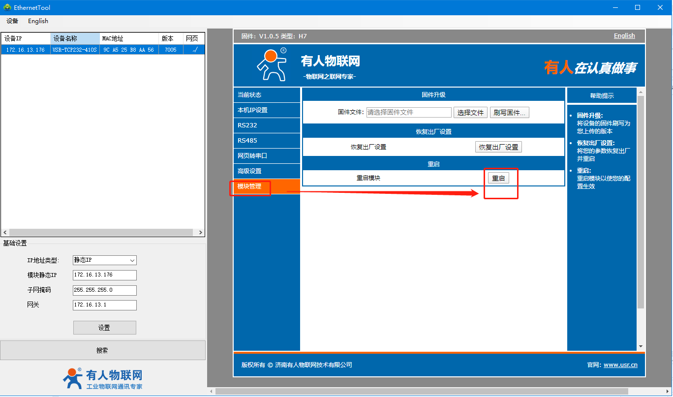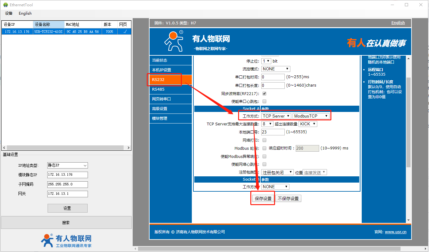410S设置软件下载:https://www.usr.cn/Download/383.html