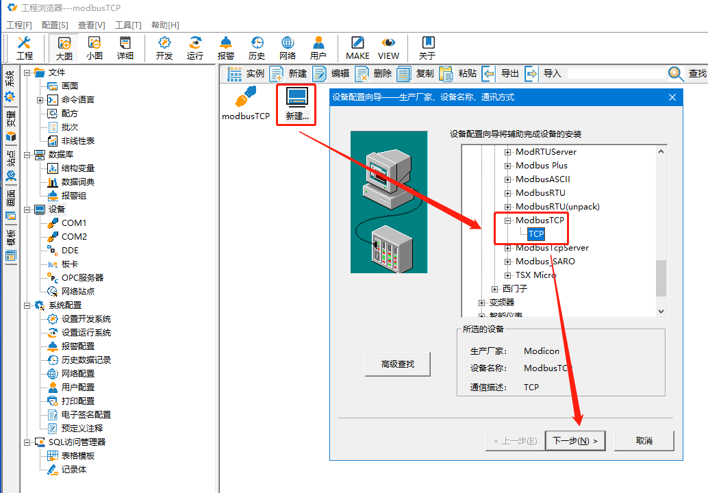 2>设备--新建设备--PLC--莫迪康--modbus TCP