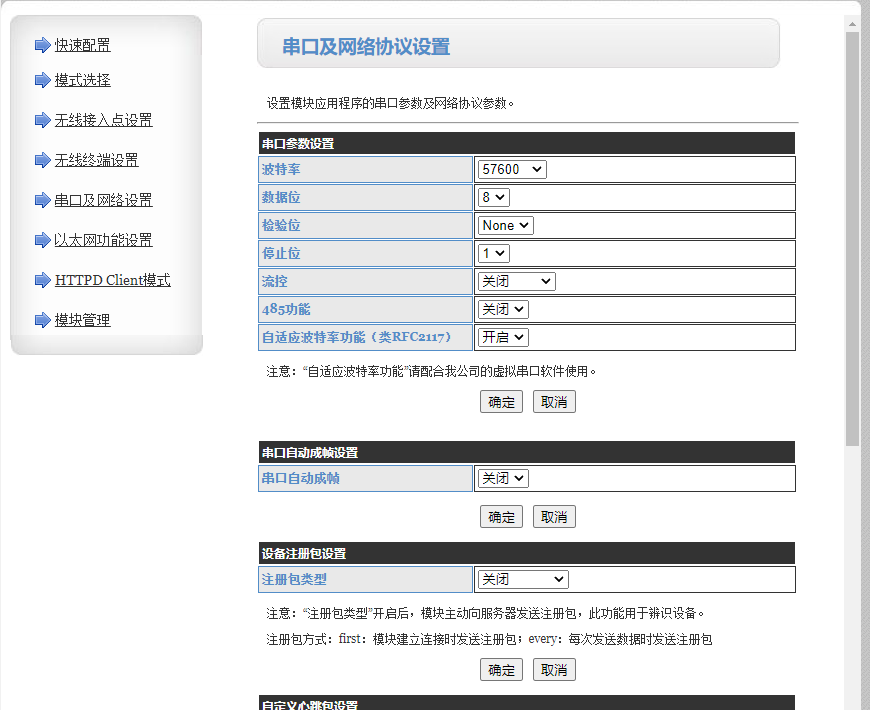 6>串口及网络设置,可以根据实际情况修改W610的串口等参数在本案例中我们保持W610出厂默认参数