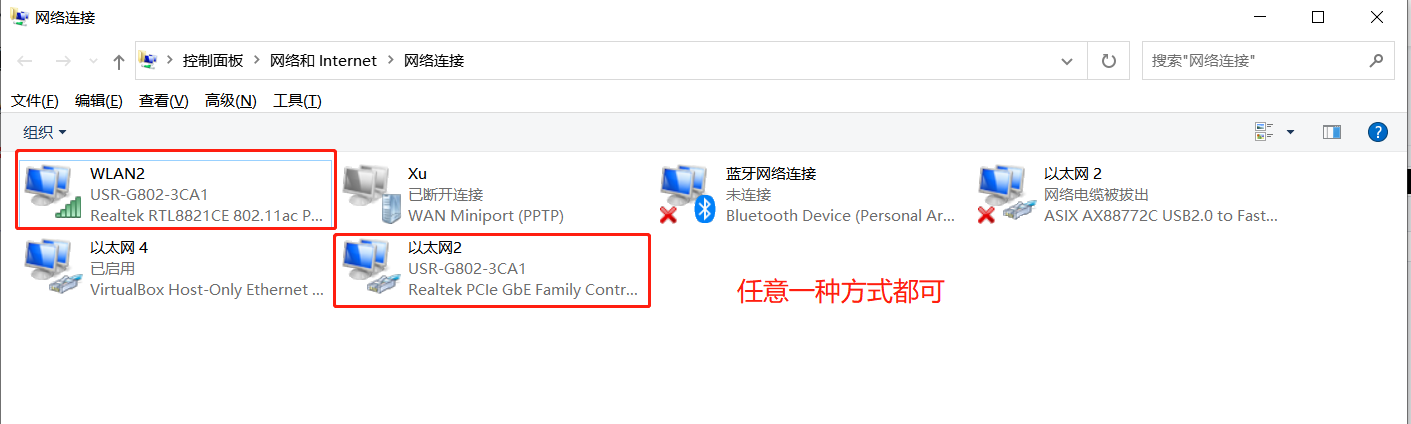 PC通过网线连接工业路由器G807的任意4个LAN口之一或者通过无线网卡连接G807的WiFi