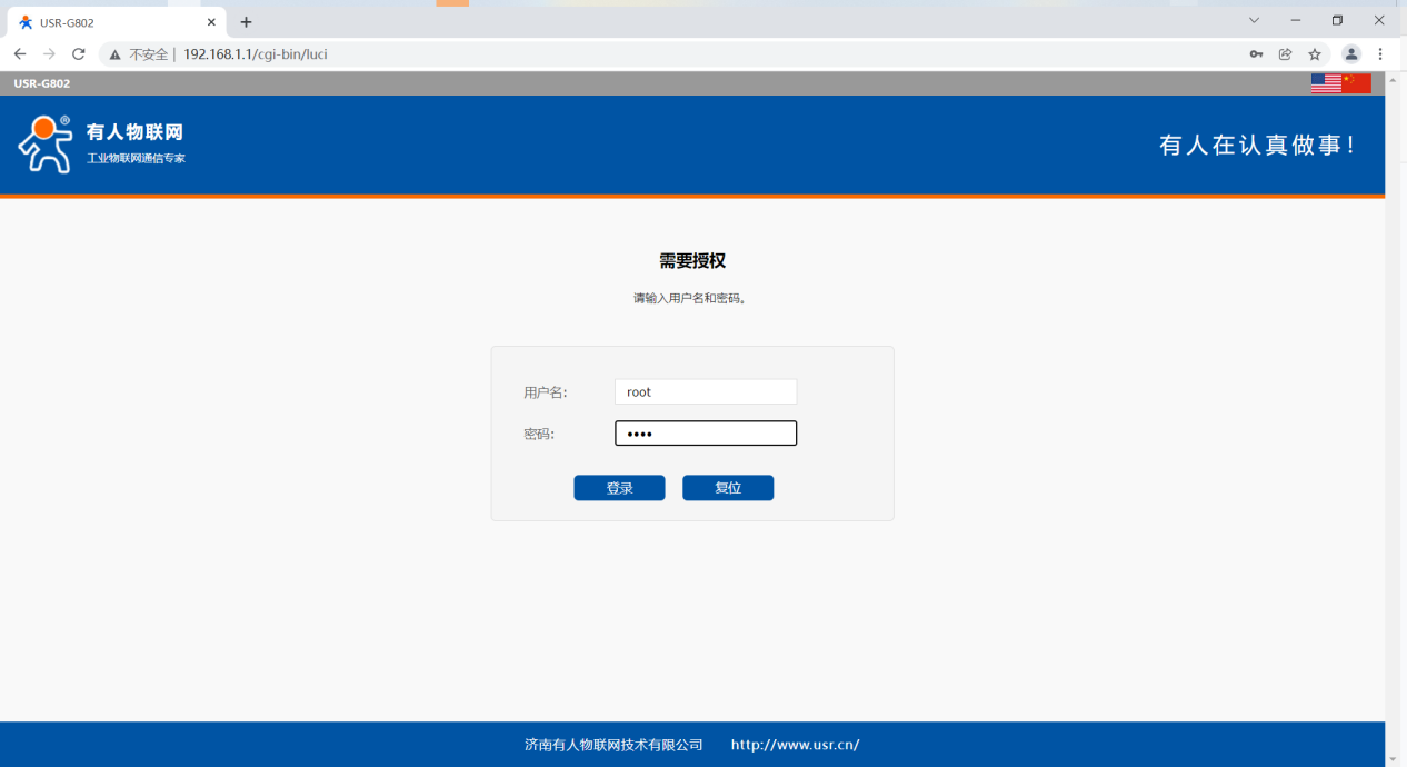 1) 打开浏览器(建议使用谷歌浏览器),在地址栏输入192.168.1.1,出厂默认用户名密码为root