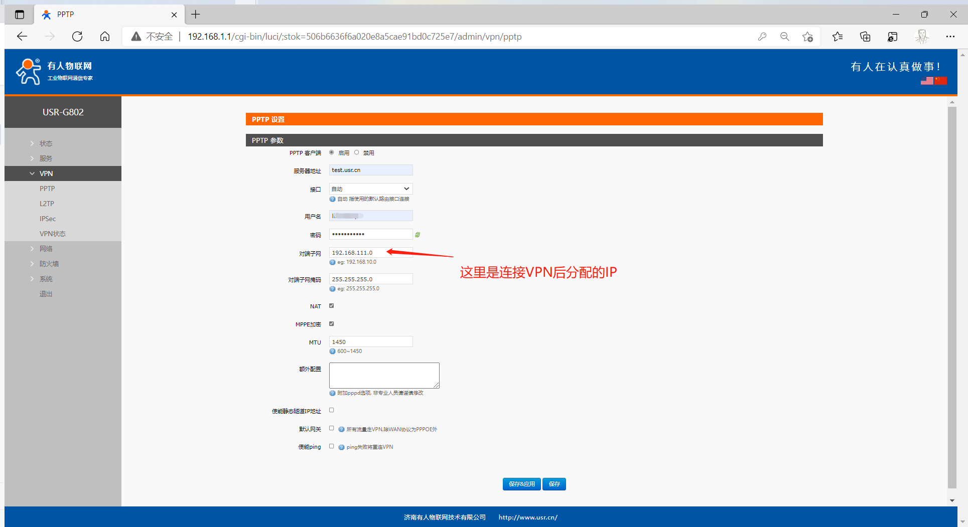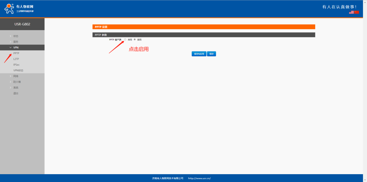 2)点击VPN-->PPTP,启用PPTP客户端,
