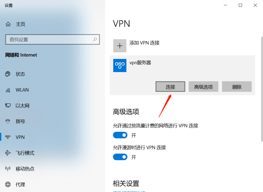 1) 电脑连接VPN,打开VPN设置,添加VPN连接