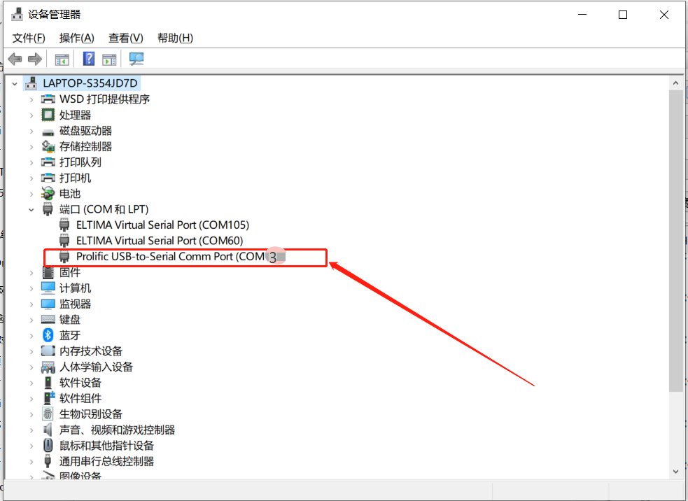 注:串口号可以在电脑的“设备管理器-端口”查看