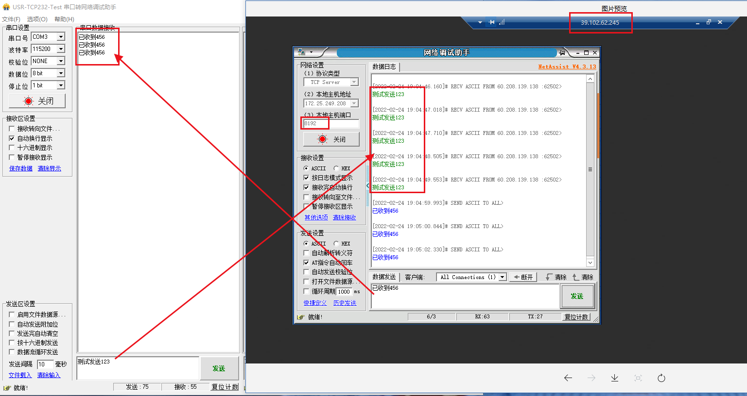用户的串口设备可以通过本模块发送数据到远程服务器,模块也可以接收来自服务器的数据,并将信息转发至串口设备。
