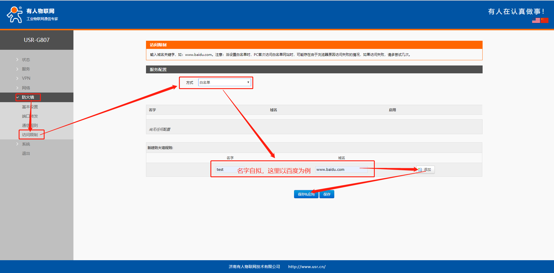 USR-G807域名黑白名单设置