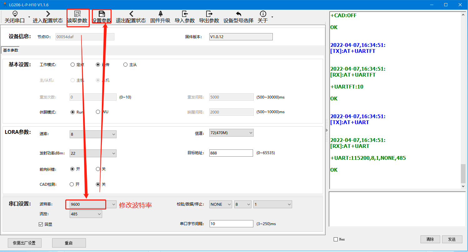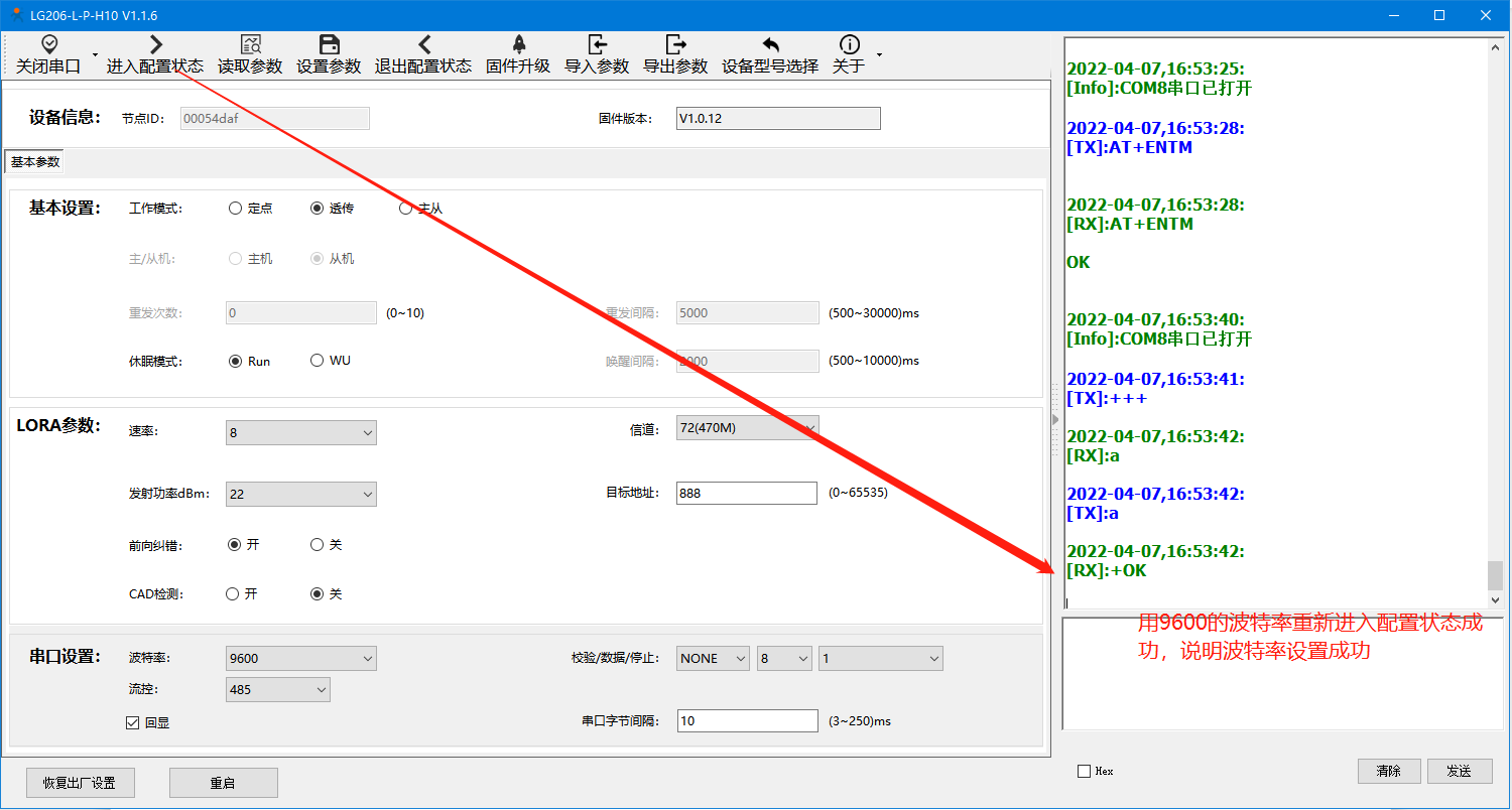 设置并保存参数,lora模块会自动重启,等待启动成功