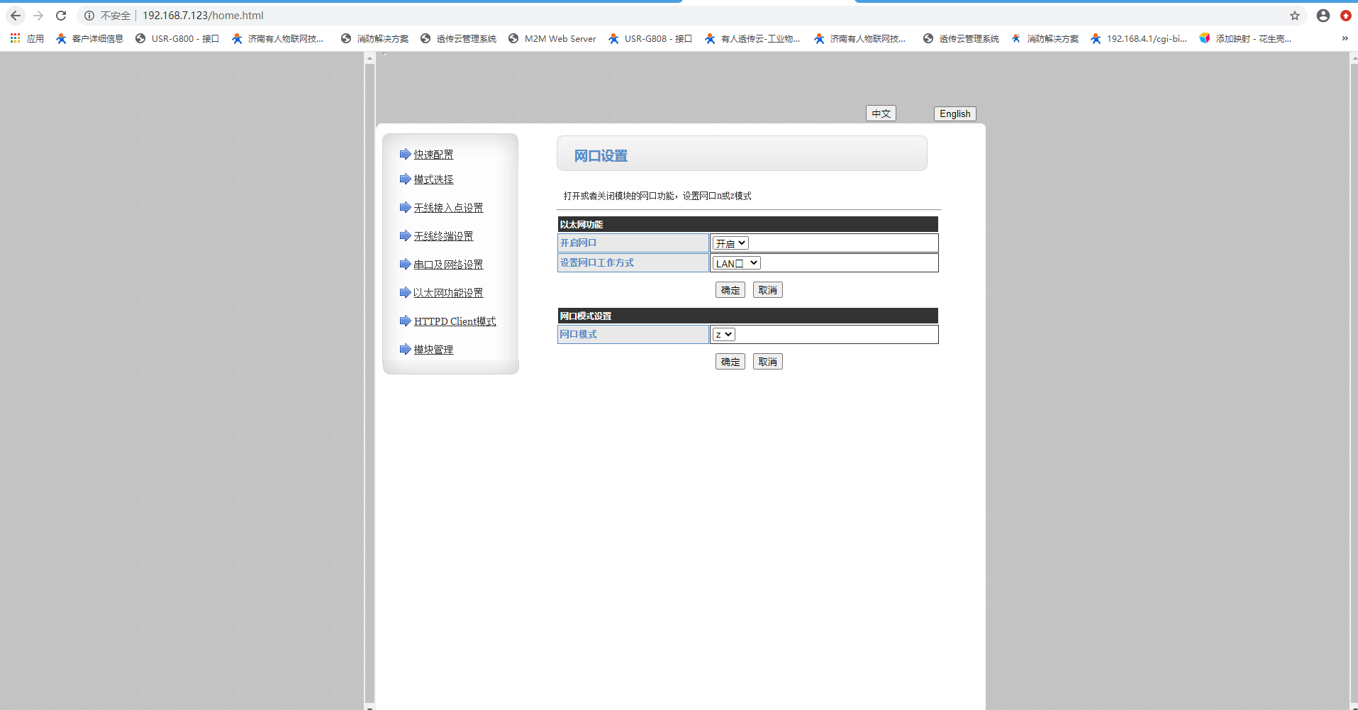 1、在以太网功能设置,网口工作模式是LAN口,网口模式设置Z。就是桥接模式。默认是n模式,需要改为z模式。点击确定。