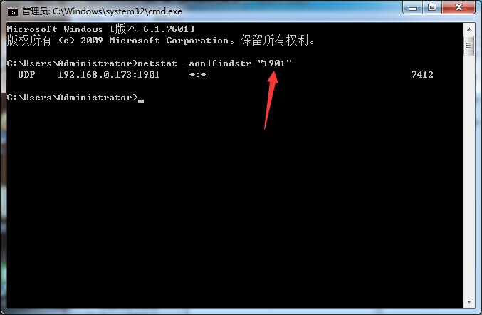 由于搜索是采用UDP的方式搜索,搜索端口为1901.所以应该检查1901端口是否被占用。具体指令为在 运行 cmd 之后输入
